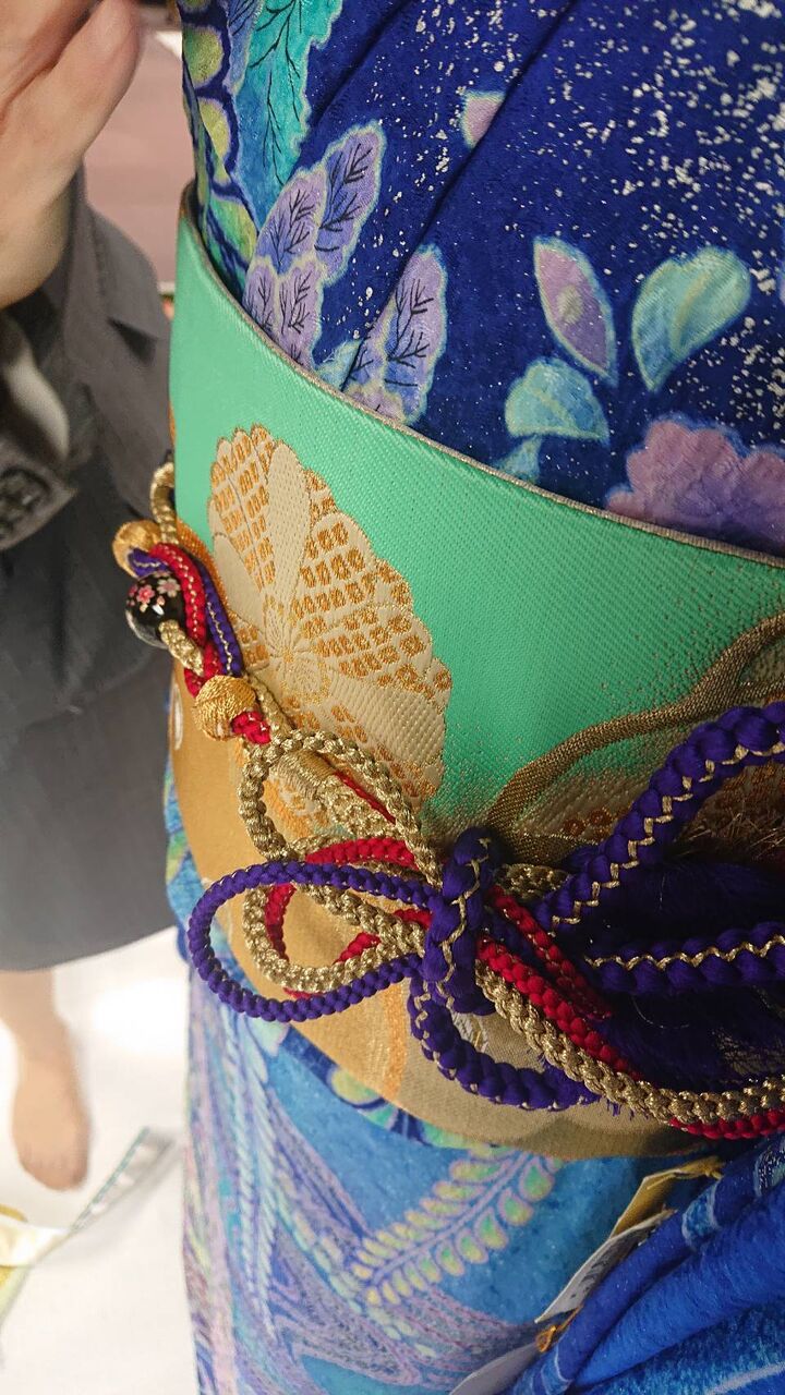 こちらは、地が淡いブルーなので帯締めにブルーを。