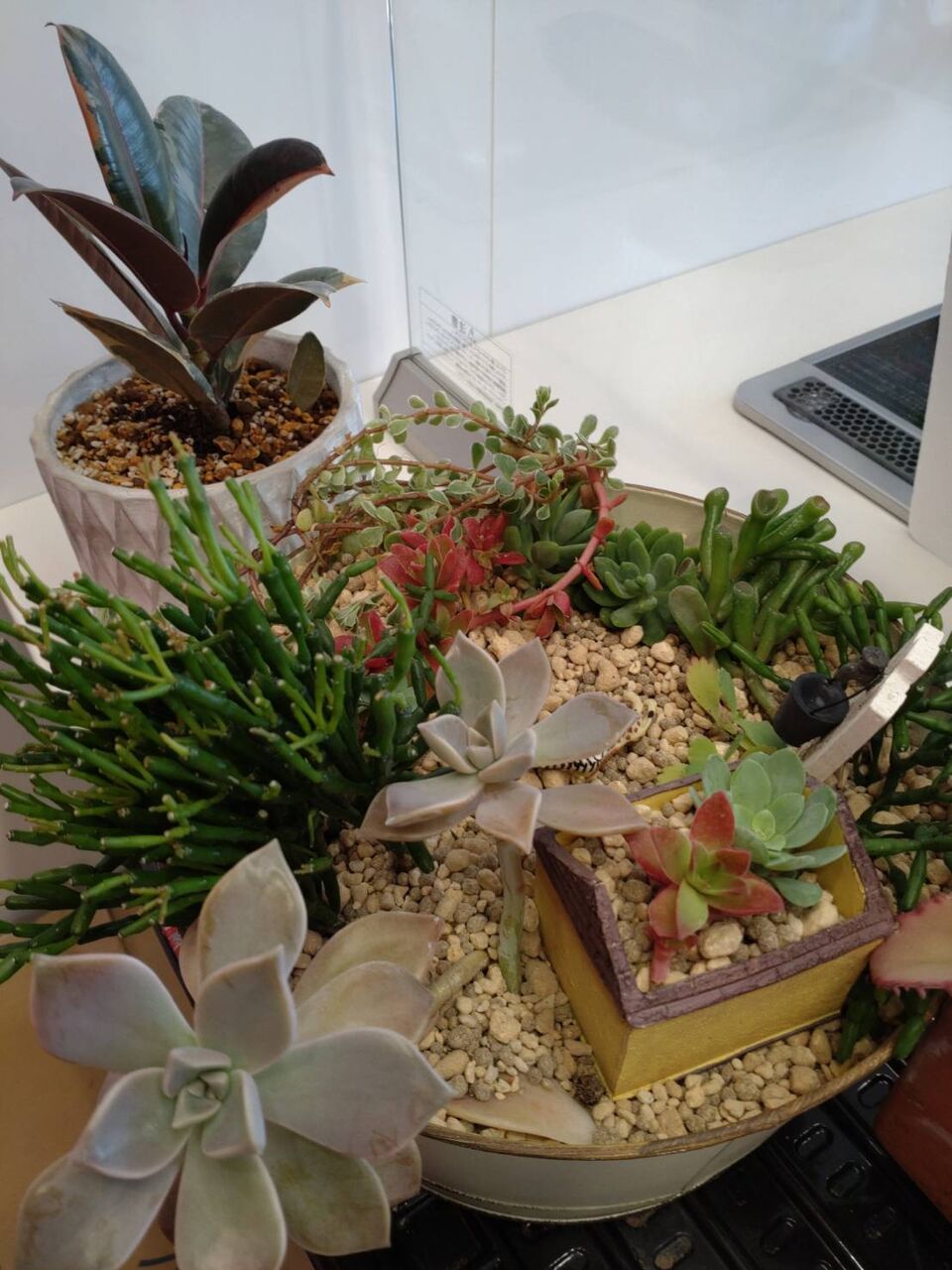 その一つとして、今日は多肉植物の寄せ植えを同僚としました。